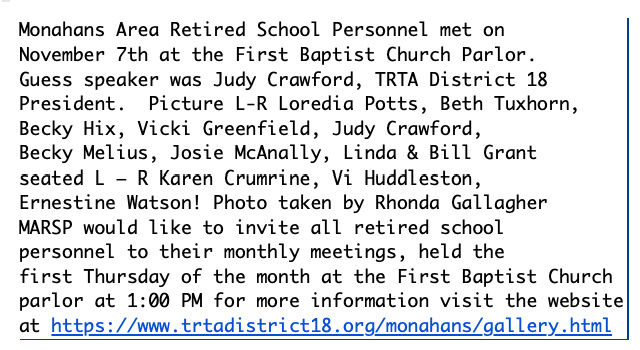 Monahans November Meeting